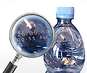 Bei Flaschen aus dem PET-System ist das MHD am oberen Flaschenhals eingelasert. Die Chargennummer steht dort direkt unter dem MHD.